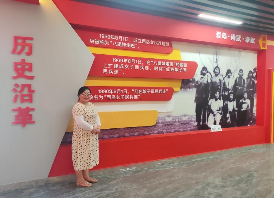 8月17日,教师党员余金燕来到海南省三亚市西岛女子民兵连纪念馆。余金燕表示,西岛女民兵坚守奉献的故事,是鲜活红色教材,将在外语教学中融入红色故事,培育学生家国情怀,让巾帼精神代代传。