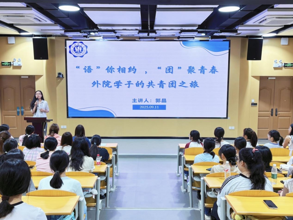 9月10日下午,郭晶以“‘语’你相约,‘团’聚青春——外院学子的共青团之旅”为题,系统介绍第二课堂建设、“一节一赛”品牌活动、特色社团和团干部培养等情况,为新生积极投身校园实践、提升综合素养提供了方向指引。她鼓励大家结合兴趣主动参与,在实践中锻炼能力、丰富校园生活。讲座不仅让新生全面了解了学院团学活动和社团建设的整体面貌,也为未来的校园实践与组织工作规划提供了清晰思路。