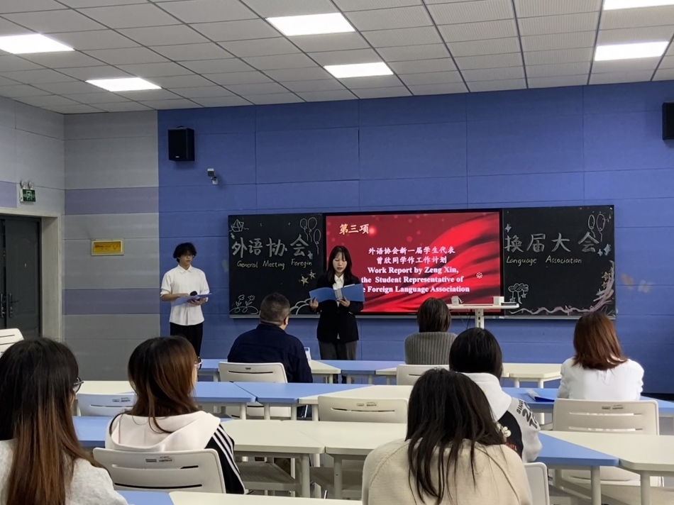 10月21日,2025-2026学年乐鱼网页版页面登录外语协会2025-2026学年换届大会在宏识楼7407顺利举行。外语协会指导老师彭奕奕、冯清出席,上一届协会干部代表和本届协会干部以及20多名协会成员参加。