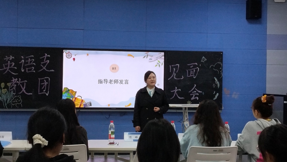 2025年10月29日,英语支教团2025-2026学年换届大会在宏识楼7407教室顺利举行。指导教师陈琳、李佳琳、社团学生干部及新老成员近50余人参会,会议由支教成员石晓满主持。