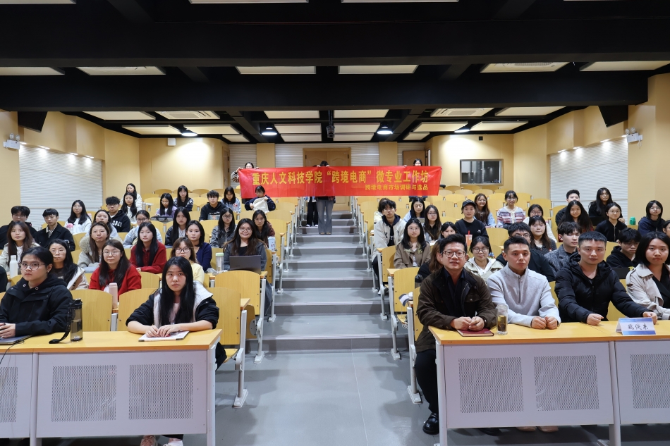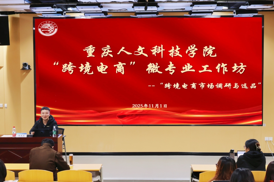 为完善跨境电商课程体系,提升学生数字化商务认知与实务能力,深化校企协同育人机制,11月1日上午10:00,学校于宏识楼7208报告厅顺利开展“跨境电商”微专业工作坊——“跨境电商市场调研与选品”。外国语学院院长秦中书、党总支副书记李巍、微专业校内导师梅颖、魏鑫出席,青年荟教育跨境电商讲师魏侠东担任主讲,73名学员参与。