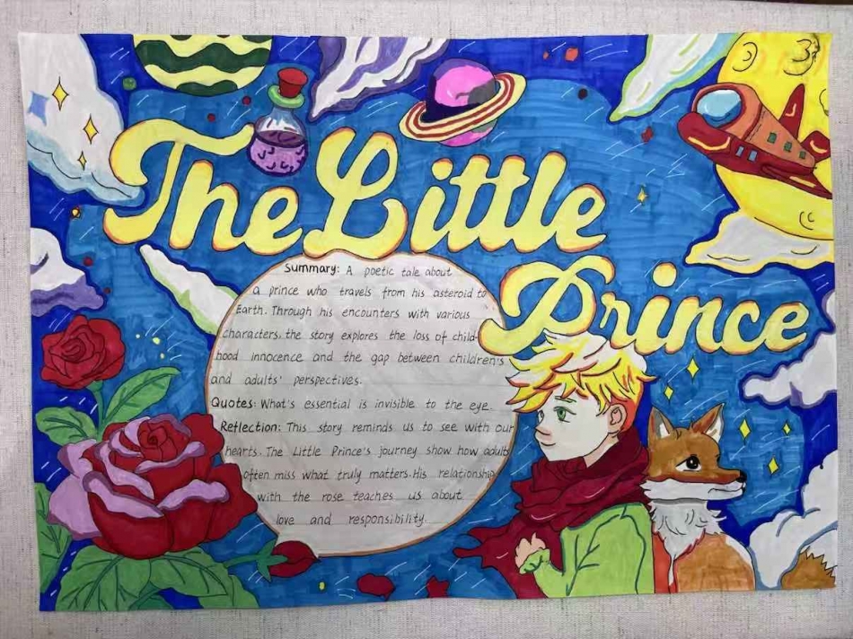 本次活动以“绘书语·品世界”为主题,引导同学们以 “读、写、画、创” 打破传统阅读边界,深化对英语书籍的理解,既锤炼英语实践能力,提升艺术创作水平,又通过作品交流分享多元视角、传递跨文化感悟,拓宽国际视野,凝聚文化认同。