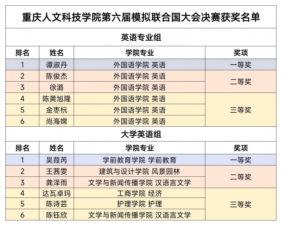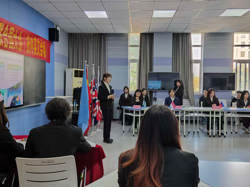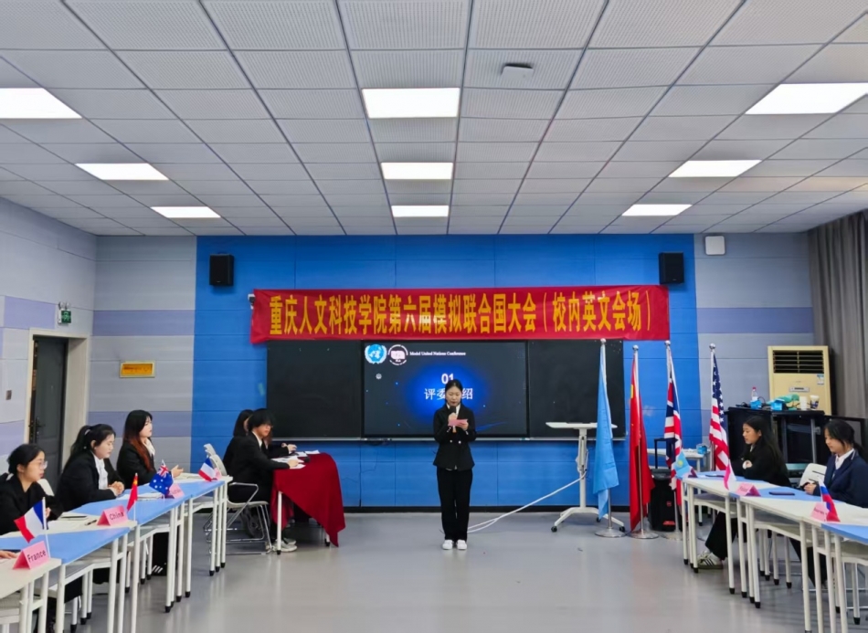 2025年11月25日,外语协会——“第六届模拟联合国大会(英文会场)”在宏识楼7407教室顺利举行。外语协会指导老师彭奕奕、冯清及英语专业教师王崇羽担任评委,来自学前教育、文新、建筑与设计、工商、护理、外国语学院的12名学生代表中、法、英等12个国家参加。