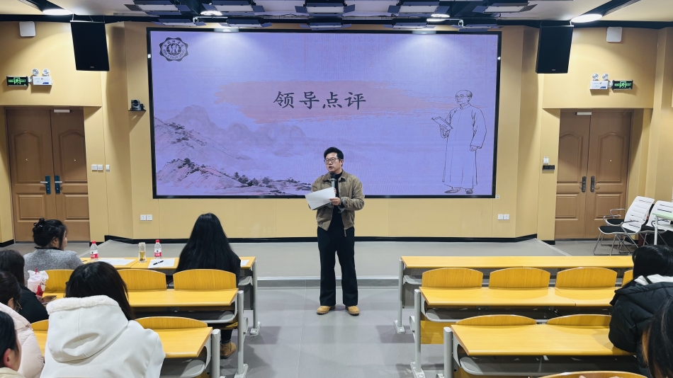 李巍对大赛进行点评。他充分肯定了各班级展现的创意与组织能力,他同时鼓励同学们继续深化班级内涵建设,深刻领悟陶行知教育精神,积极参与活动,激发团支部活力,共同推动外国语学院的发展。