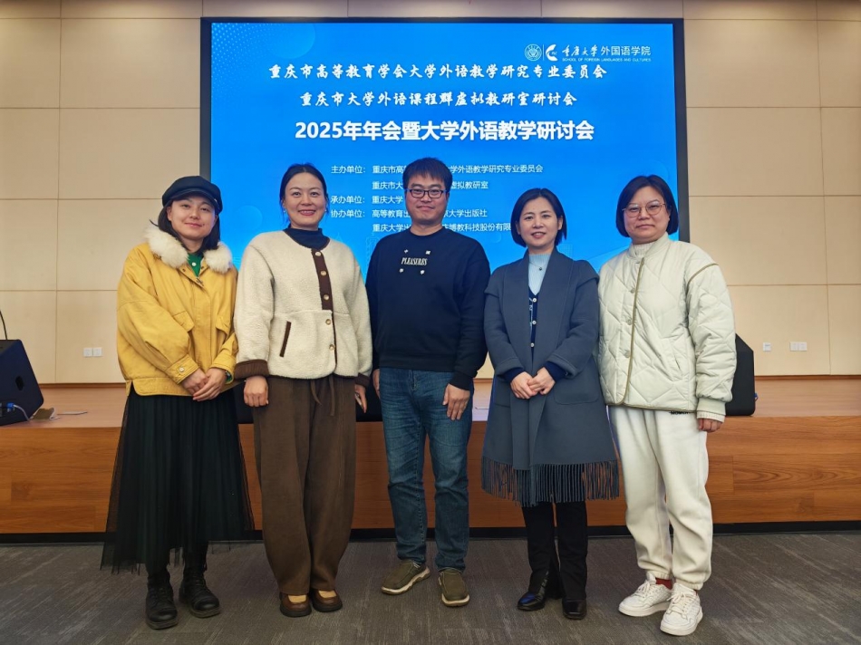 11月29日,重庆市高等教育学会大学外语教学研究专业委员会2025年年会暨重庆市大学外语课程群虚拟教研室教学研讨会在重庆大学顺利召开。公共外语教学部选派5名骨干教师参会。