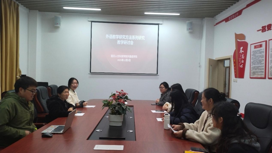为深化外语教学改革、提升教师教学研究能力,外国语学院于10-11月开展线上“外语教学研究方法系列培训”,覆盖量化研究、质性研究、课例研究与行动研究四大核心板块。12月3日上午,学院在7206会议室举办线下主题研讨会,组织全体参培教师集中交流研讨、分享学习心得,推动理论学习向教学实践深度转化。