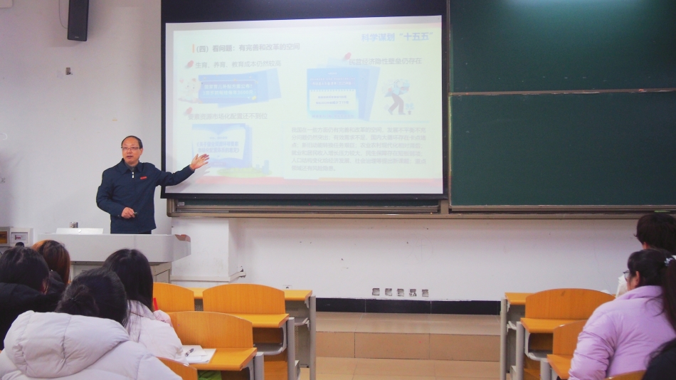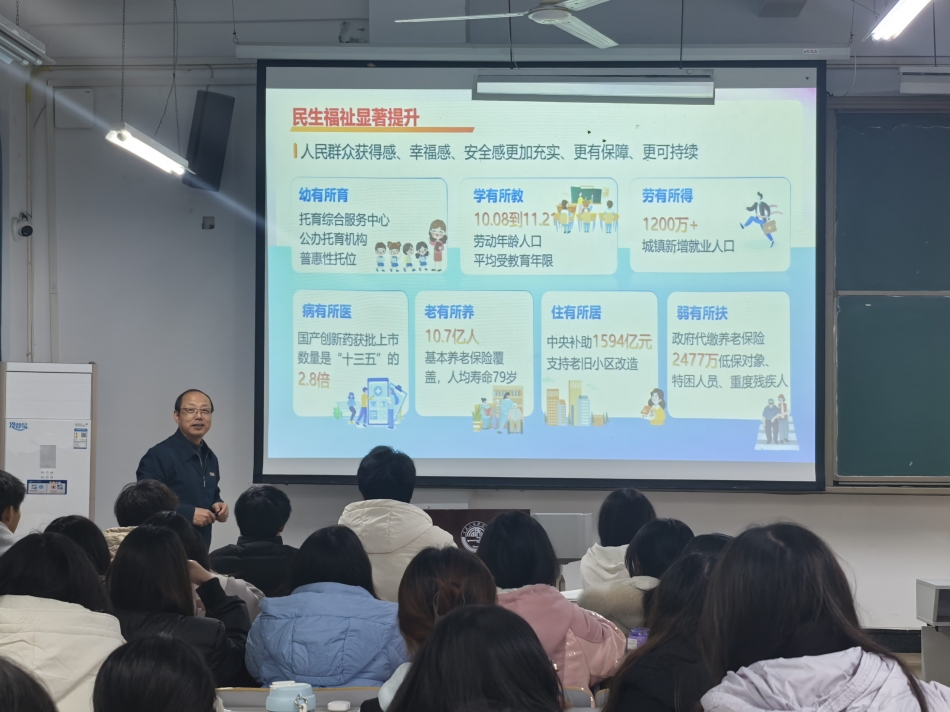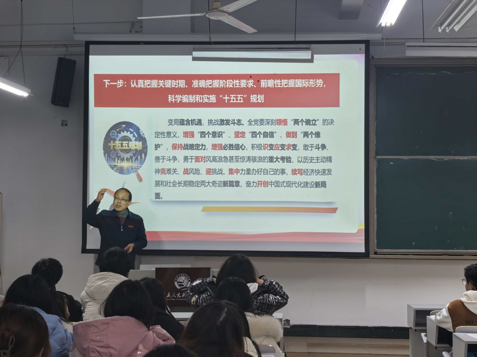 此外,周光明立足国内外复杂环境,进一步分析“十五五”时期的发展趋势,从全会意义到国家中长期战略布局进行系统阐释,帮助学生清晰把握中国式现代化的前进方向。谈及青年使命时,他强调新时代大学生应培养战略思维与时代意识,将个人理想融入国家发展大局,把理论学习成果转化为投身“十五五”建设的实际行动,在推进中国式现代化的进程中贡献智慧与力量。